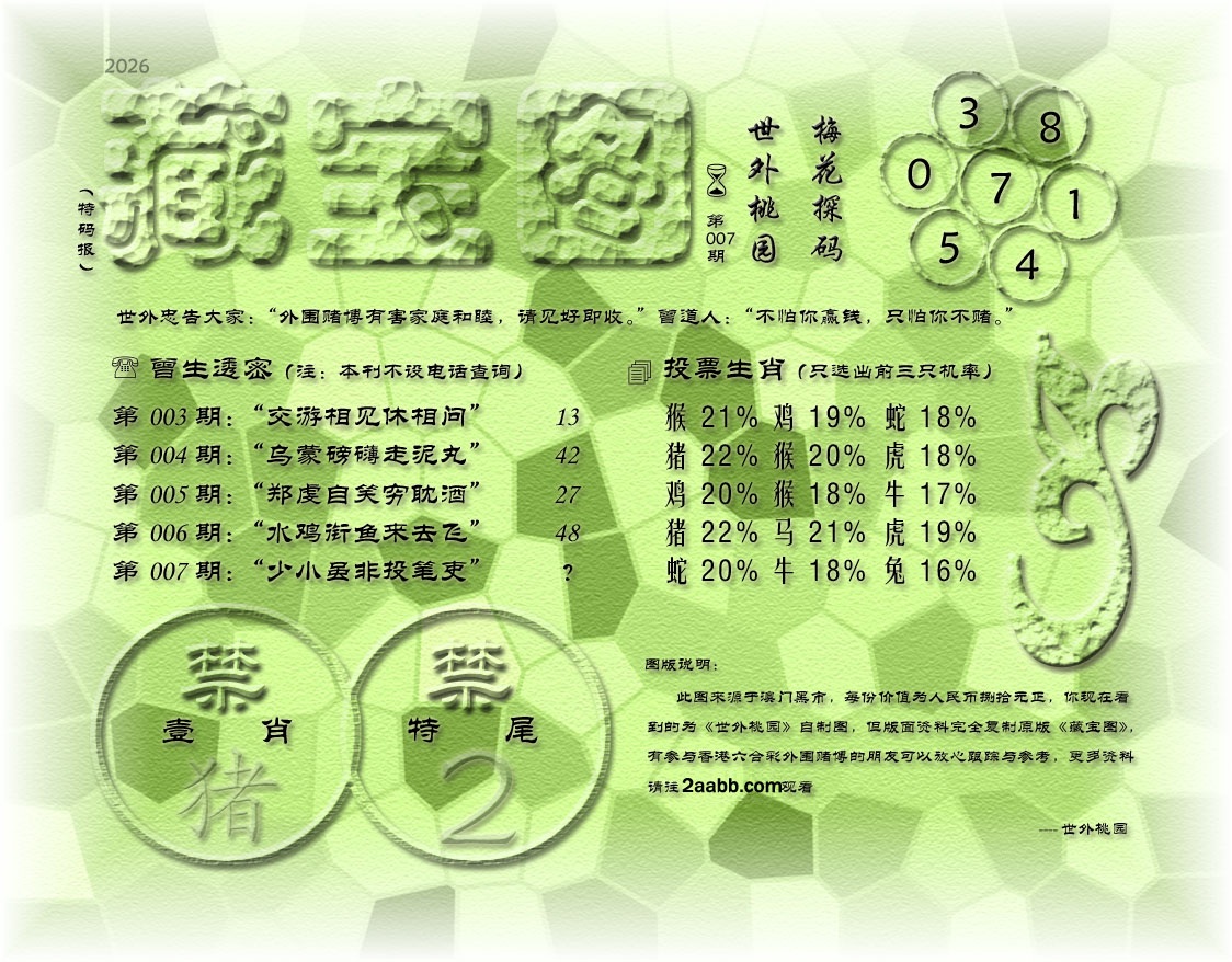 | 温馨提示:第007期开奖时间为01月17号星期六搅珠,请大家互相转告! |